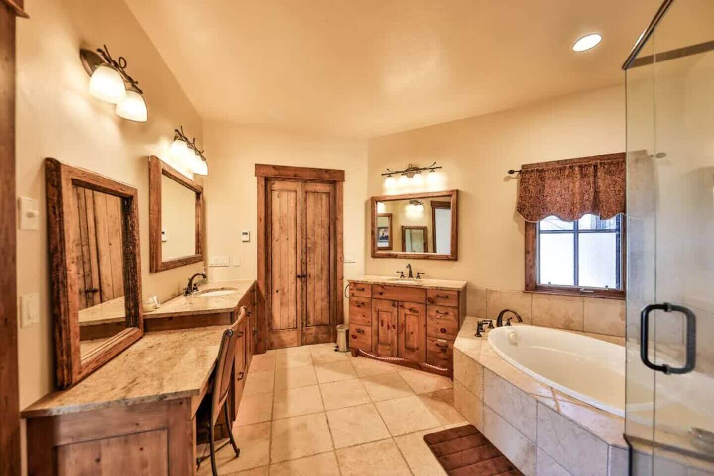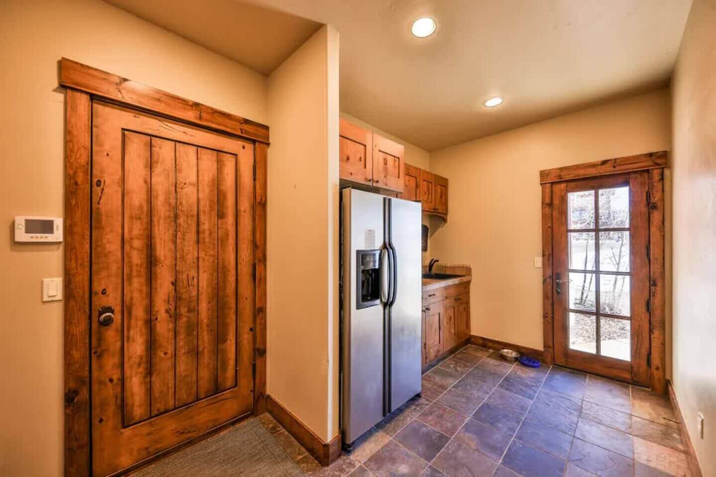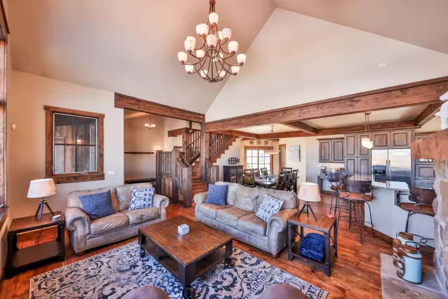 Offering a warm welcome to family and friends, Saddle Ridge Lodge touts high-end, family-friendly finishes throughout. Spend the days on the slopes or golf course and spend the evenings soaking in the private hot tub or competing in a game of foosball. The spacious layout is perfect for families and groups with two living rooms, a playroom, gas fireplaces, a high-end kitchen, and a large patio with a grill, egg smoker, and a hot tub. What’s more? Your dog can join in on the fun, too!