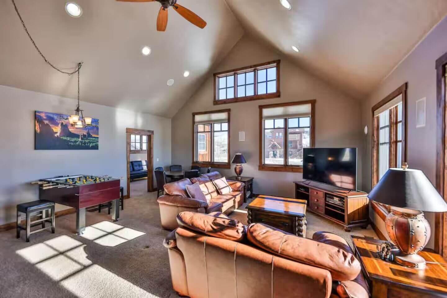 Gather everyone for a fun evening filled with foosball, arcade games, board games, and laughter in the spacious game room.
